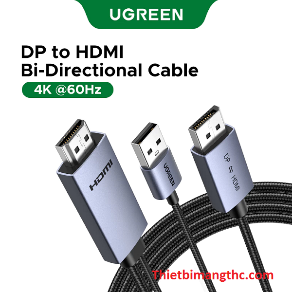 Cáp hai chiều UGREEN 4K DP sang HDMI với cáp sạc USB Độ phân giải cao với vỏ nhôm và tay áo bện dài dài 2M HD187 cao cấp