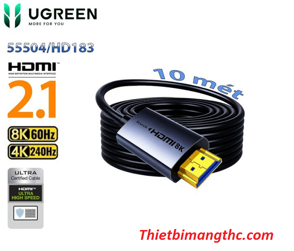 Cáp HDMI 2.1 sợi quang AOC 10m Ugreen 55504 HD183 Chuẩn 8K@60Hz, 4K@240Hz, 48Gbps cao cấp