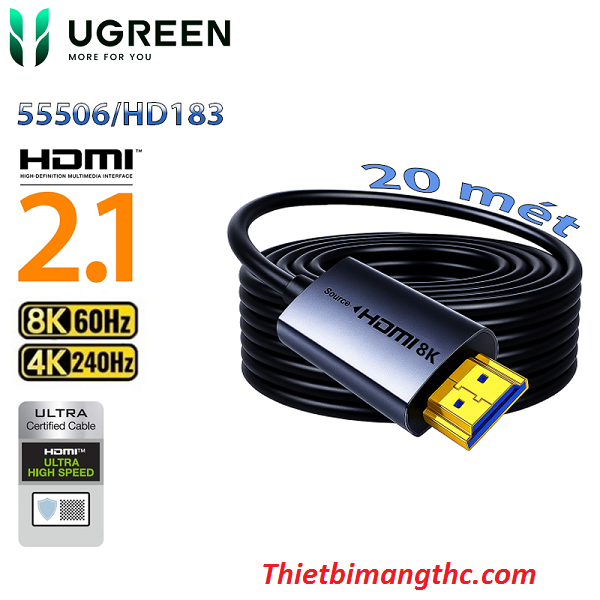 Cáp HDMI 2.1 Sợi quang AOC 20m Ugreen HD183 55506 hỗ trợ 8K@60Hz, 4K@240Hz, 48Gbps cao cấp