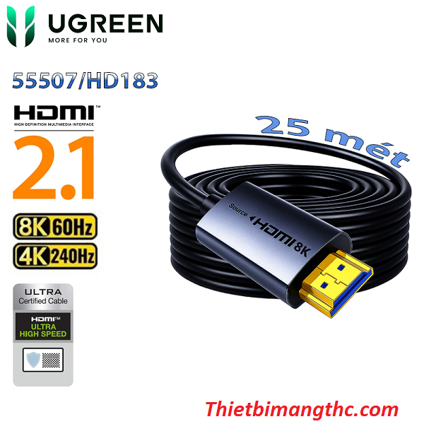 Cáp HDMI 2.1 Sợi quang AOC 25m Ugreen HD183 55507 hỗ trợ 8K@60Hz, 4K@240Hz, 48Gbps cao cấp