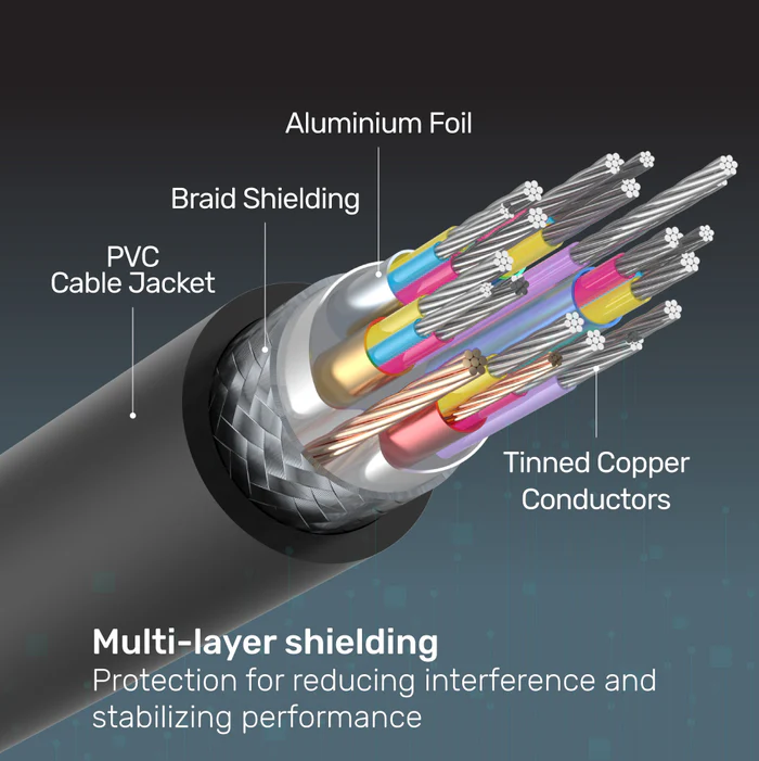 Trải nghiệm hình ảnh 4K Ultra HD hoàn hảo ở tần số 60Hz trên khoảng cách xa với cáp HDMI 2.0 này, được thiết kế với cấu trúc che chắn 7 lớp—bao gồm lá nhôm, lớp bảo vệ bện và lớp vỏ PVC bền bỉ—để giảm thiểu nhiễu và đảm bảo truyền tải ổn định, tốc độ cao 18Gbps. Với lõi đồng mạ thiếc và đầu nối mạ vàng, cáp hỗ trợ HDR, ARC và các định dạng âm thanh cao cấp, cho hiệu suất vượt trội trong mọi thiết lập.