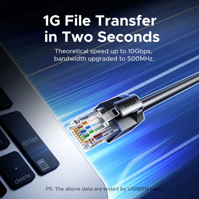 Tốc độ vượt trội: Hỗ trợ chuẩn 10Gbps, nhanh gấp 10 lần so với Cat6 thông thường, giúp bạn lướt web, chơi game online và tải tệp tin nặng mà không lo trễ (latency).