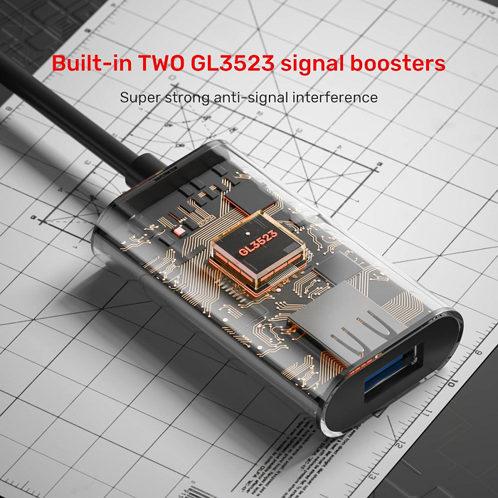 Chipset khuếch đại Active: Tích hợp IC thông minh giúp duy trì tín hiệu ổn định, chống nhiễu và ngăn ngừa tình trạng sụt giảm tốc độ trên đường truyền dài.