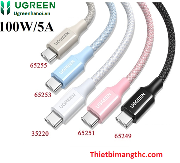 Cáp sạc nhanh 100W/5A USB-C sang USB -C dài 1M Ugreen L502 65249 cao cấp (Black) cao cấp