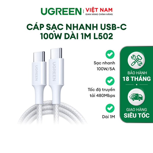 Cáp sạc nhanh 100W/5A USB-C sang USB -C dài 1M Ugreen L502 65255 cao cấp (Titanium) cao cấp