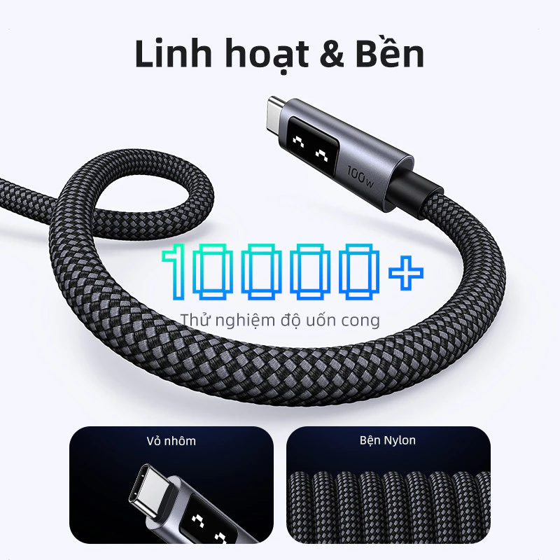 Màn hình LED thông minh: Cáp loại C 100W này có biểu tượng mặt cười LED dễ thương cho bạn biết thiết bị của mình đang sạc như thế nào. Vừa thiết thực vừa thú vị khi sử dụng