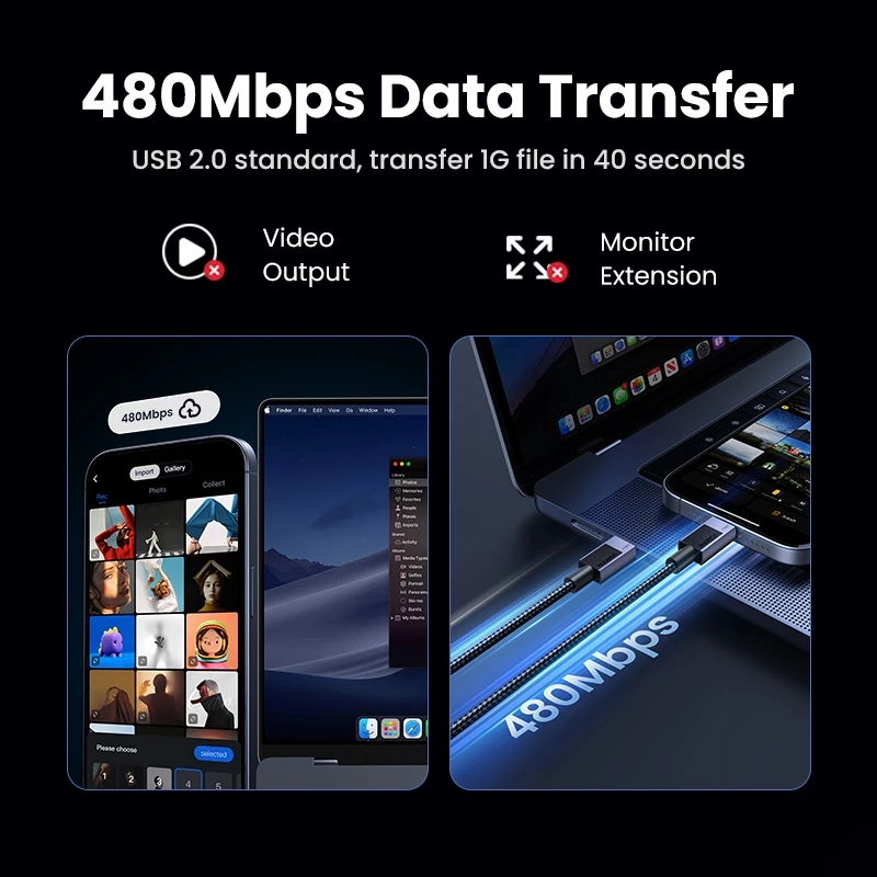 Truyền dữ liệu tốc độ cao: Ngoài chức năng sạc, cáp còn hỗ trợ truyền dữ liệu với tốc độ lên đến 480Mbps, chuẩn USB 2.0. Người dùng có thể dễ dàng đồng bộ hóa dữ liệu giữa các thiết bị mà không mất nhiều thời gian.