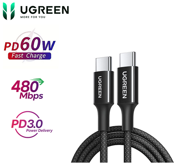 Cáp sạc nhanh USB-C sang USB-C PD 60W (20V/3A) dài 2M Ugreen L501 65245 (Black) cao cấp