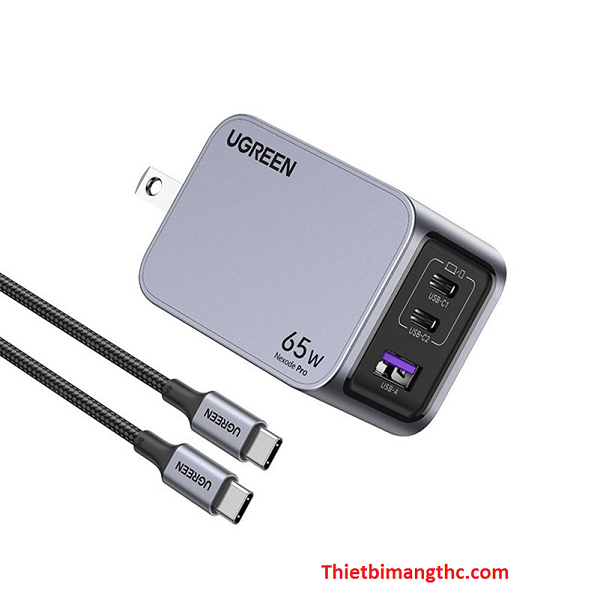 Củ sạc nhanh 3 cổng GaN Nexode Pro 65W Ugreen X755 25870 (US Plug) cao cấp – Hiệu năng mạnh mẽ, sạc đa thiết bị tối ưu