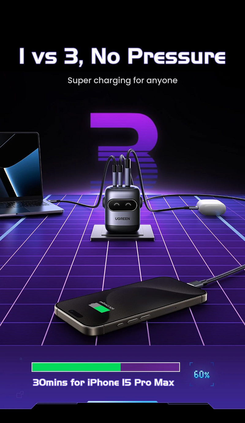 Nếu bạn đang tìm một củ sạc nhanh đa cổng, thiết kế đẹp, chất lượng cao thì Củ sạc nhanh hình Robot 65W 3 cổng Type-C x2, Type-A x1 Ugreen 45003 cao cấp (US Plug) chắc chắn là lựa chọn tối ưu.