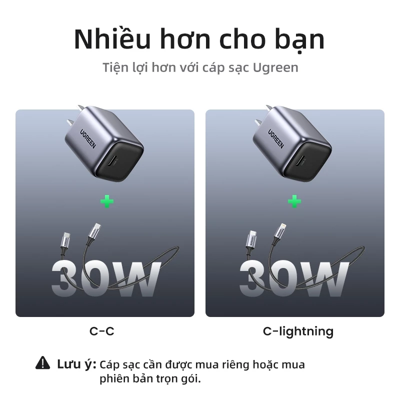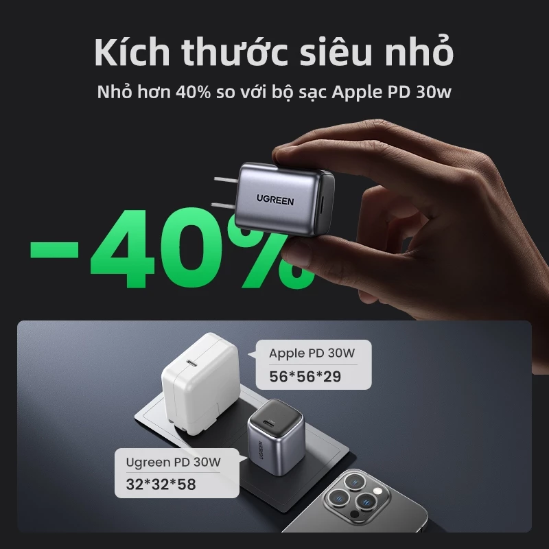 Củ sạc nhanh Nexode Mini 30W GaN cổng USB-C Ugreen 55530/X513 hàng cao cấp là giải pháp sạc nhỏ gọn, mạnh mẽ dành cho người dùng iPhone, iPad, MacBook Air M1/M2 và nhiều thiết bị hỗ trợ Power Delivery. Nhờ ứng dụng công nghệ GaN hiện đại, củ sạc mang đến hiệu suất cao, giảm tỏa nhiệt, giúp sạc ổn định và an toàn hơn so với các củ sạc truyền thống.