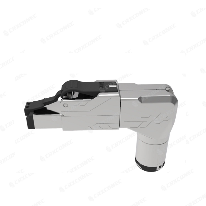 Đầu nối RJ45 cỡ lớn, góc 90 độ, không cần dụng cụ, dành cho Ethernet 10 gigabit