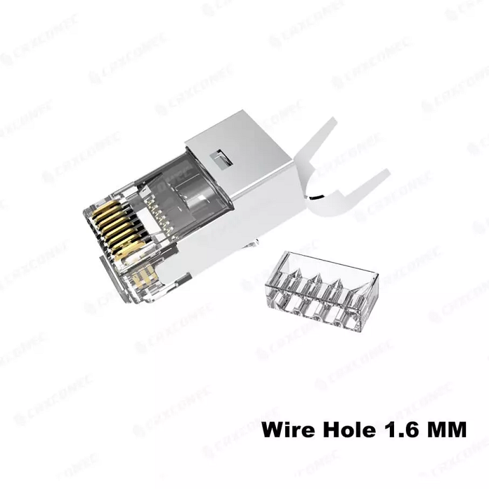Đầu nối RJ45 8 chân Cat.6A STP có đuôi rất đa năng, thích hợp cho cáp CCTV, cáp ngoài trời và các giải pháp Ethernet mạng khác. Được thiết kế để kết nối với cáp có kích thước lớn hơn, chẳng hạn như cáp Ethernet Cat.6A hoặc Cat.7 (cáp lõi rắn 22 đến 24 AWG). Sử dụng vật liệu polycarbonate trong suốt chịu va đập cao, nó có thể chịu được thử nghiệm uốn cong 20 lần của chốt cắm. Nó không dễ bị gãy khi bị rối với dây cáp. Lỗ dây thanh chịu tải có đường kính 1,6 mm, phù hợp với dây có lớp cách điện từ 1,50 đến 1,60 mm.