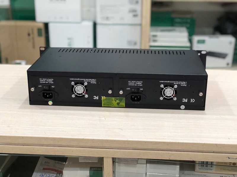 Khung nguồn tập trung 14 Khe cắm converter hay còn gọi thanh PDU chứa (Converter) dùng cho hệ thống quản lý tập trung các bộ converter. Khung gồm 14 gồm khe cắm có thể gắn 1-14 converter quang khác nhau. Bộ nguồn tập trung này có hỗ trợ nguồn dự phòng và hỗ trợ cắm nóng là giải pháp kinh tế cho hệ thống mạng cáp quang.