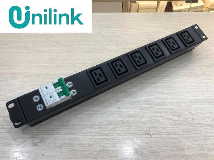 Thanh nguồn PDU 06 ổ cắm chuẩn C19, Công suất 20A, có C 32A Unilink (UNI-PDU-6C19-C32) cao cấp