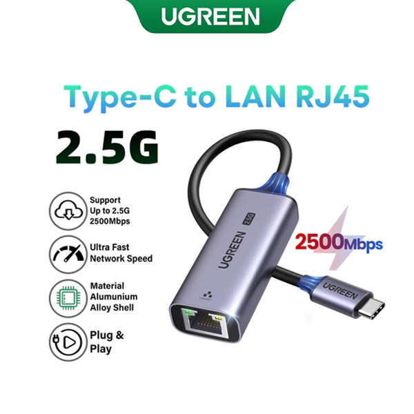 Bộ chuyển đổi USB Type C sang Lan 2.5G 2500mbps Ugreen 25052 cao cấp Thunderbolt 3, RJ45 LAN, tương thích với Windows, MacOS, iOS, iMac, MacBook Pro/Air, iPad Mini, Surface Pro, iPhone 15.